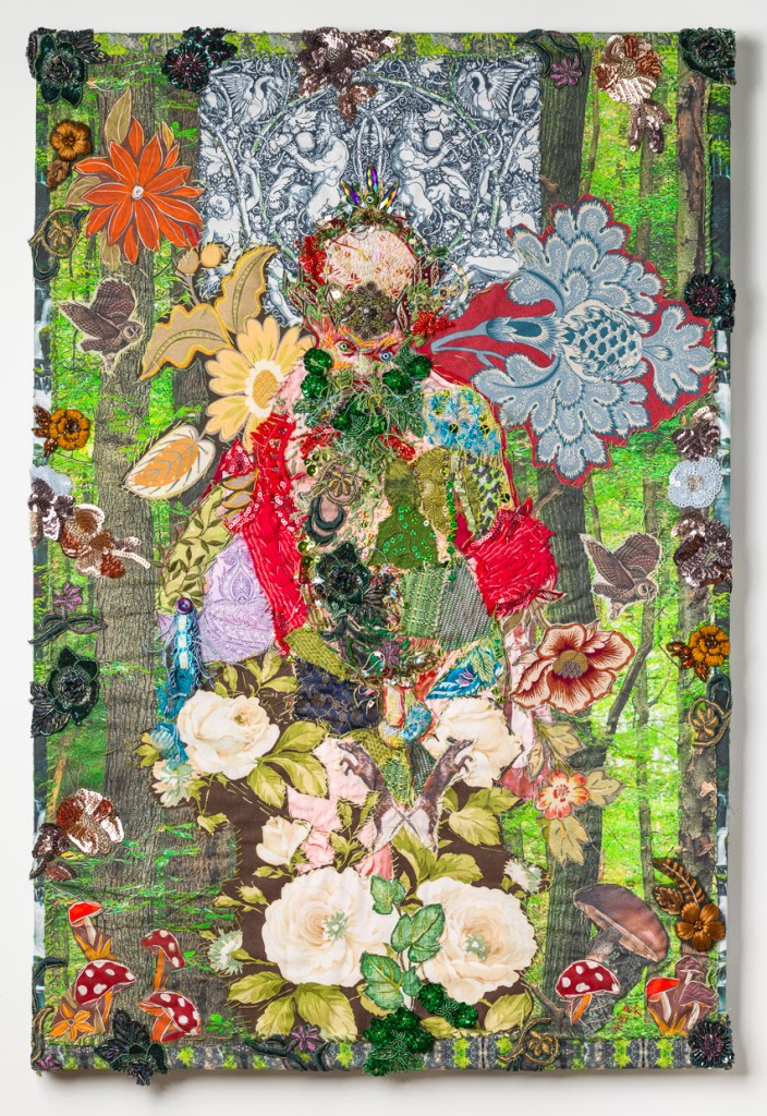 The sculptures in both my oracles and mystic’s hand series are inspired by recent visits to Pompeii, Florence, and Rome. Working entirely by hand, I drape the small pieces of fabric directly onto the repurposed display forms, and then hand-stitch the pieces together, adding beading and sequin embellishment, also. These works reexamine gender and art histories and consider the role of the artist navigating the tensions of societies under duress. These new fiber art sculptures embody protective talismans as structures of support for community-engaged rebuilding.