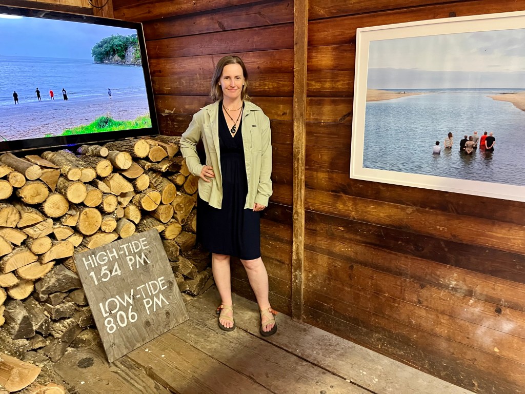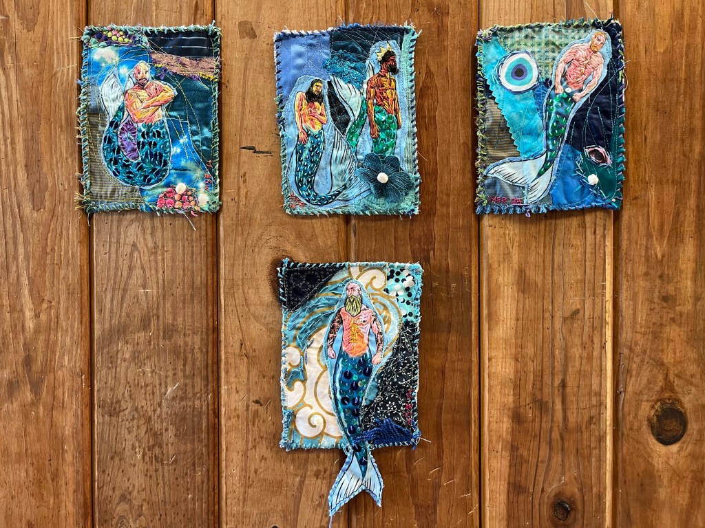 In addition to the clothing, I had available for the first time small textile collage “patches” with hand-stitching, sequins and beading that are intended to be added to the back of a jacket (or framed). Their titles come from poems and song lyrics about the ocean: A Deeper Love, The Tide Is High, Promises, Ocean Deep, Ocean Eyes, and “The sea can do craziness…” (Thank you, Mary Oliver).